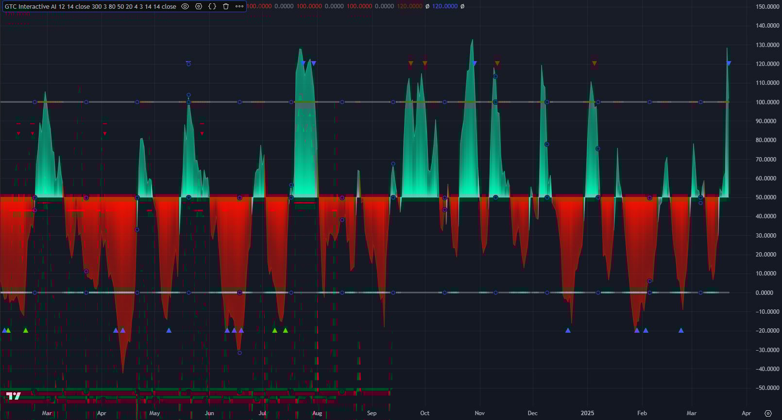The Flagship Indicator of Gordon Trading Co. While traditional indicators rely on rigid formulas that struggle to adapt to ever-changing market conditions, the GTC Interactive AI redefines what’s possible by harnessing state-of-the-art AI technology. It dynamically adjusts overbought and oversold levels in real-time, making it not just another tool but a strategic ally in your trading journey.